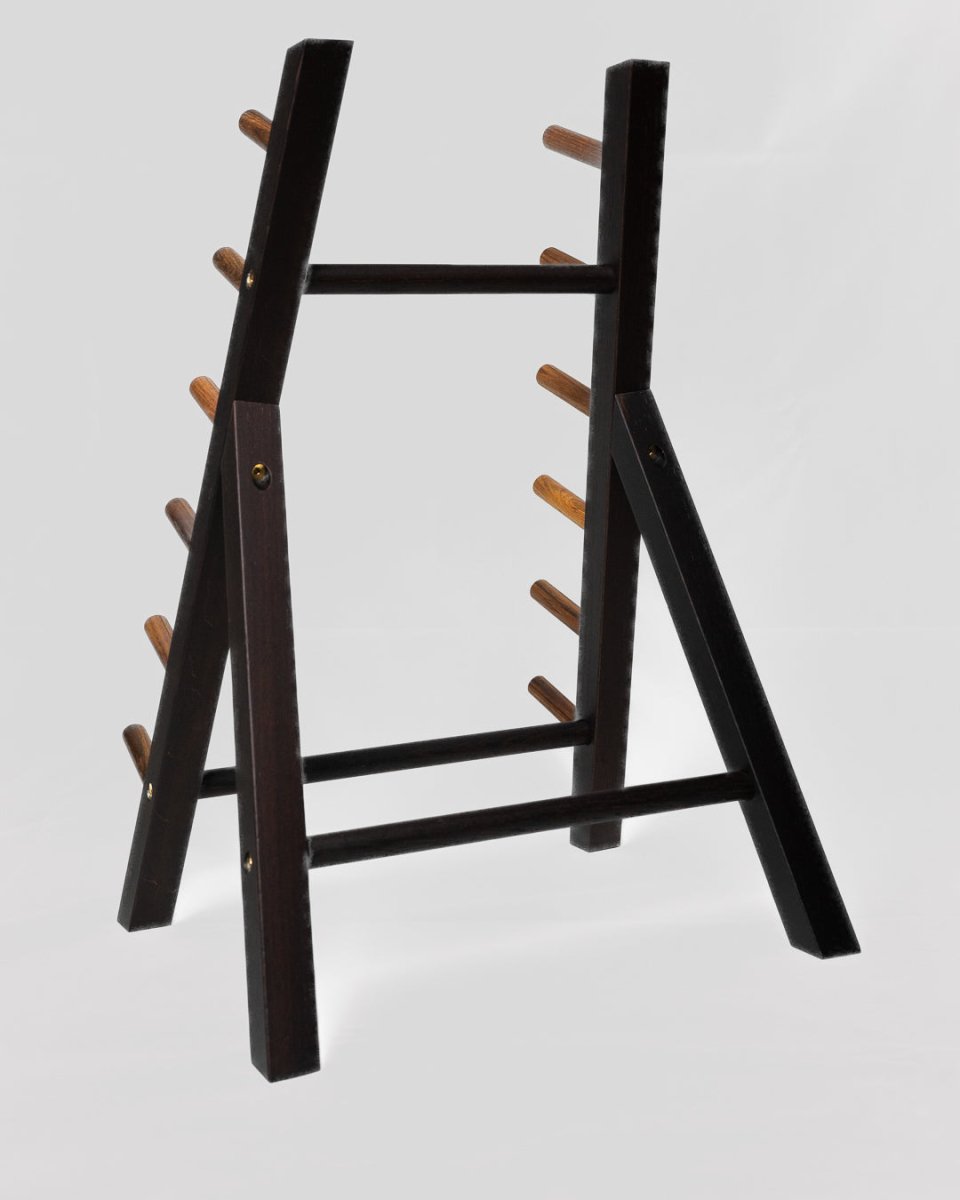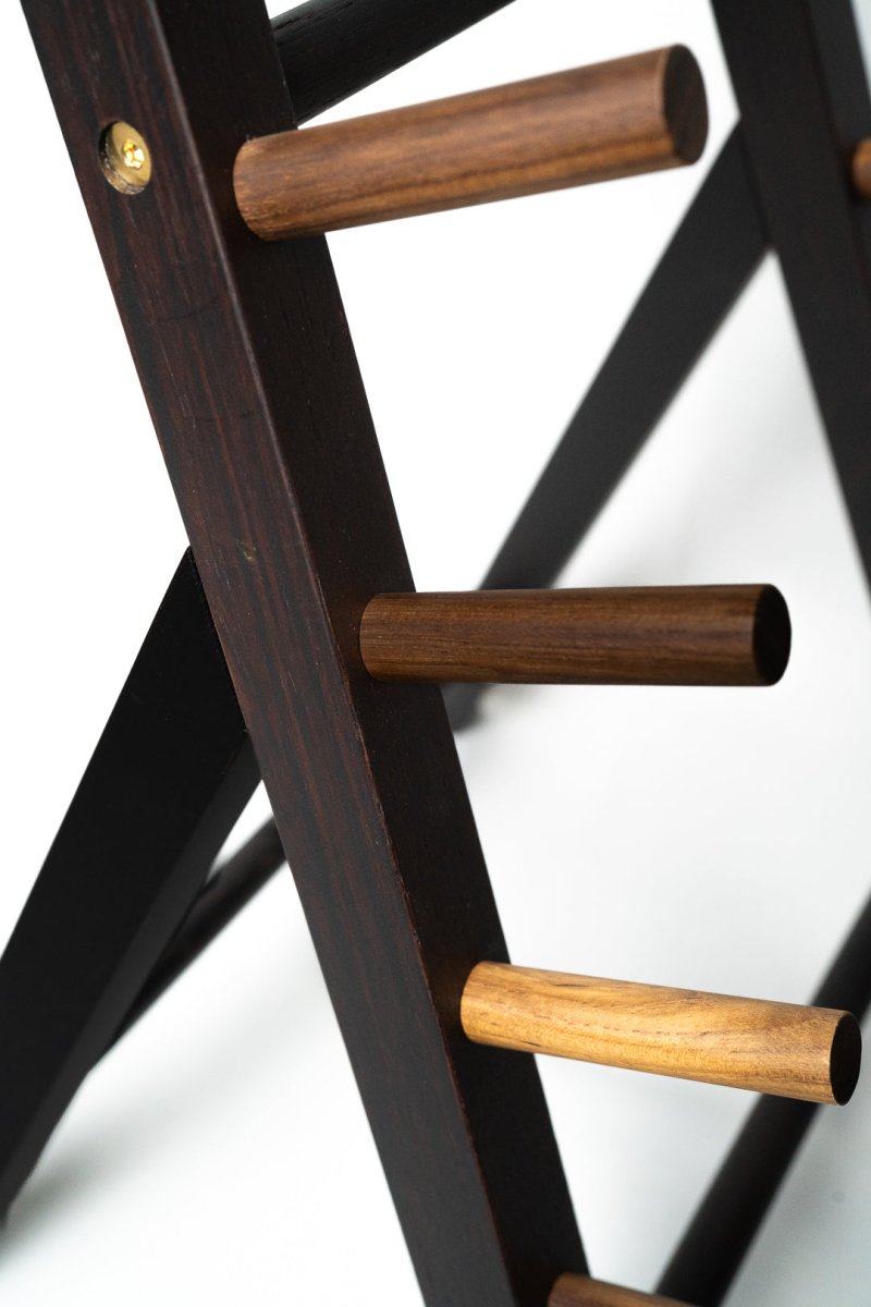 Stativet er laget av wenge, og kommer med skruer og monteringsnøkkel.
