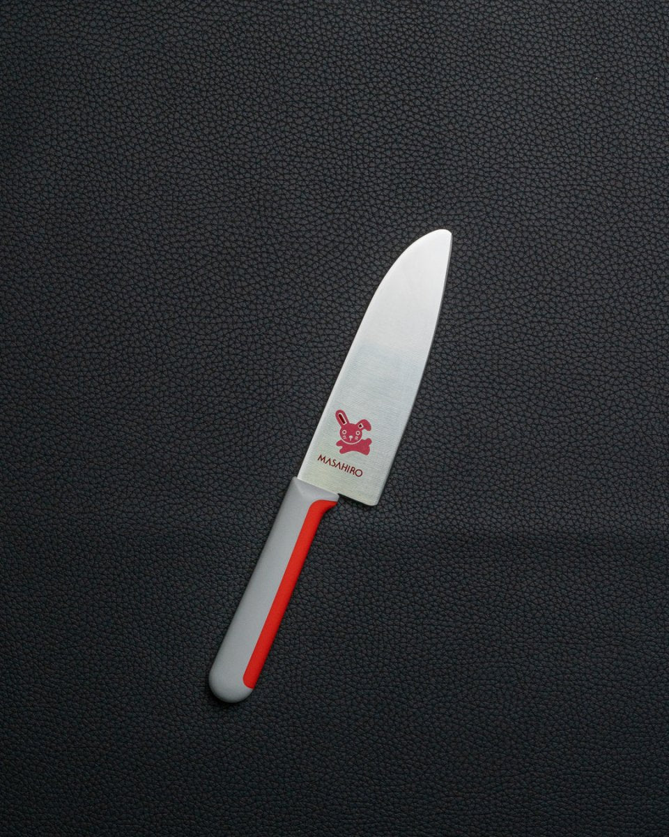 Dette er en liten kniv for barn som ønsker å bidra på kjøkkenet. Denne serien er laget for å inkludere barn i matlagingen. Ved å gi barna egne skarpe og trygge kniver som har en avrundet tupp som i tillegg er kjempesøt vil barnet få eierskap til matlagingen og måltidet som blir laget.