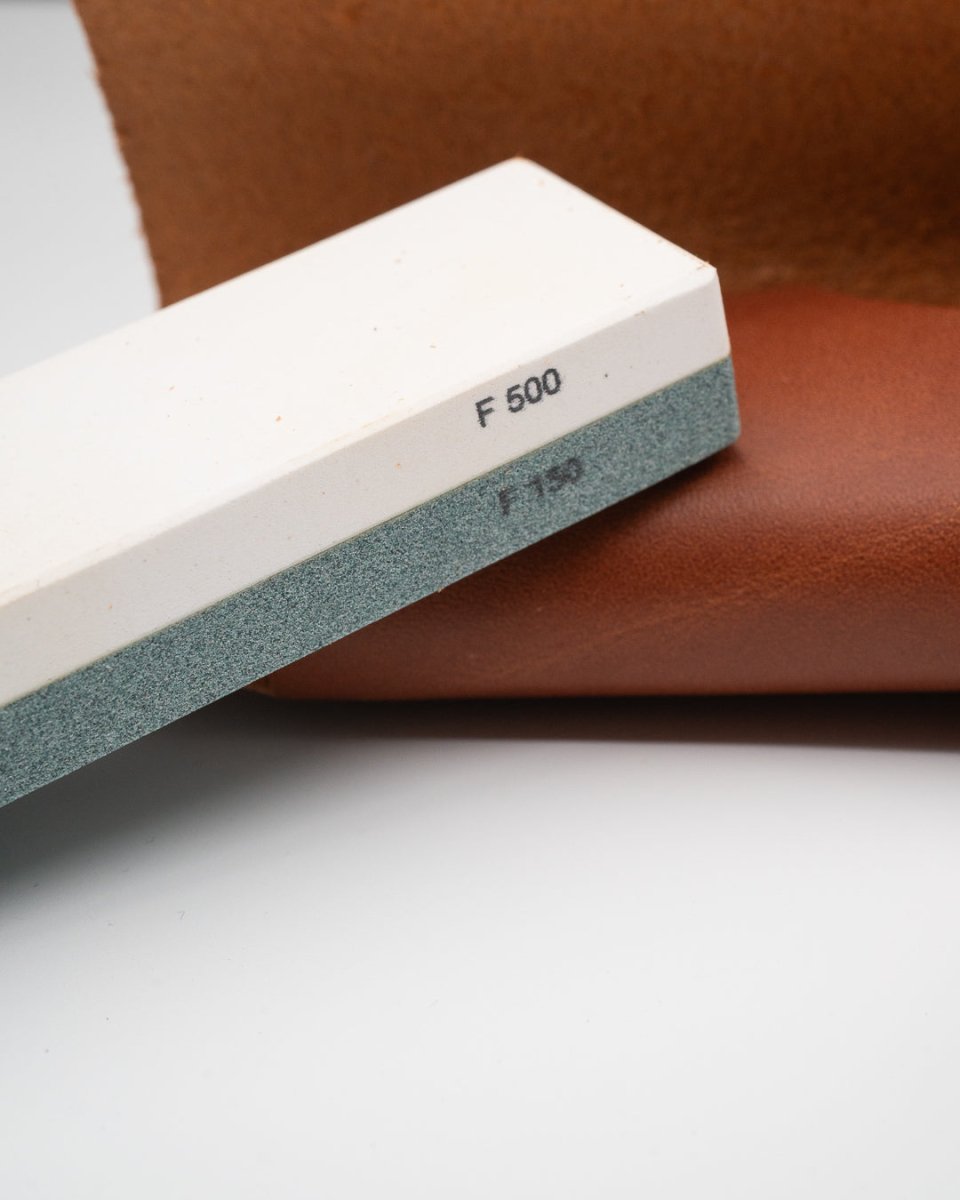 Steinen har to sider: 360 grit for å rette opp og reparere slitte egger, og 1000 grit for å gi en finere og jevn finish.
