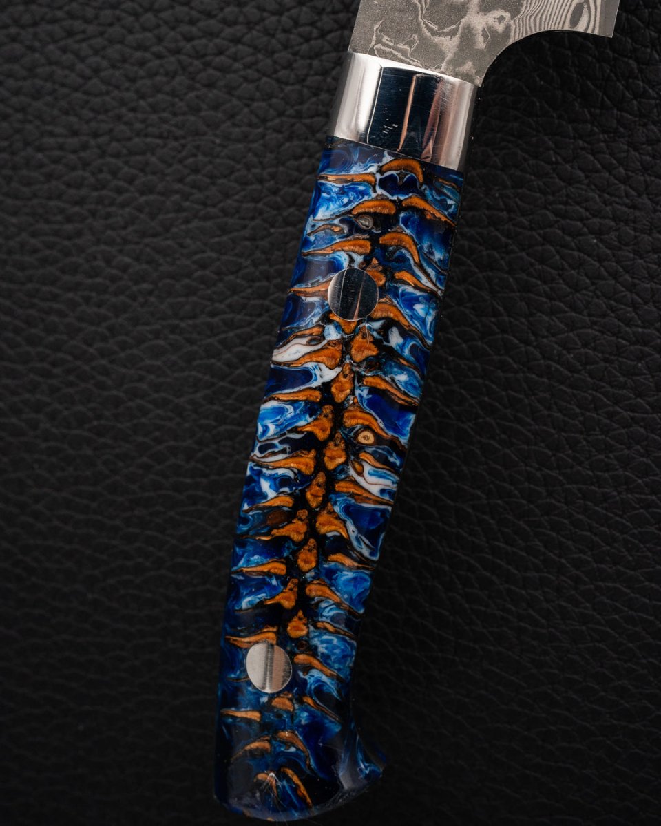 Takeshi Saji er en anerkjent japansk knivmaker kjent for sine håndlagde kniver med vakre damaskmønstre og høykvalitets stål. Hans petty-kniver, som ofte er laget med VG-10 eller Blue Steel No.2, er populære valg for presisjonsarbeid i kjøkkenet.
