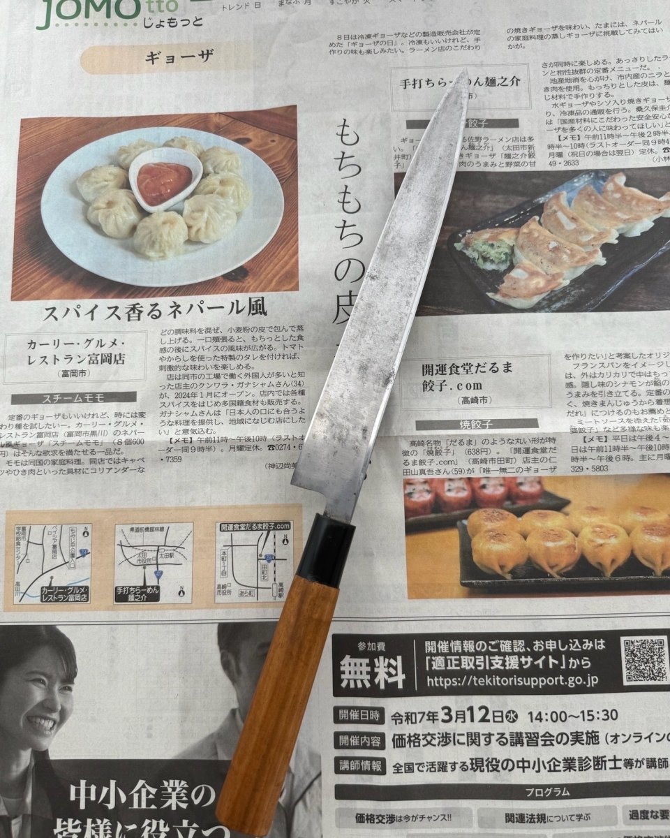 Ved sliping av en yanagiba er det viktig å slipe med en høyere vinkel på den ene siden og en null-vinkel på den flate siden.