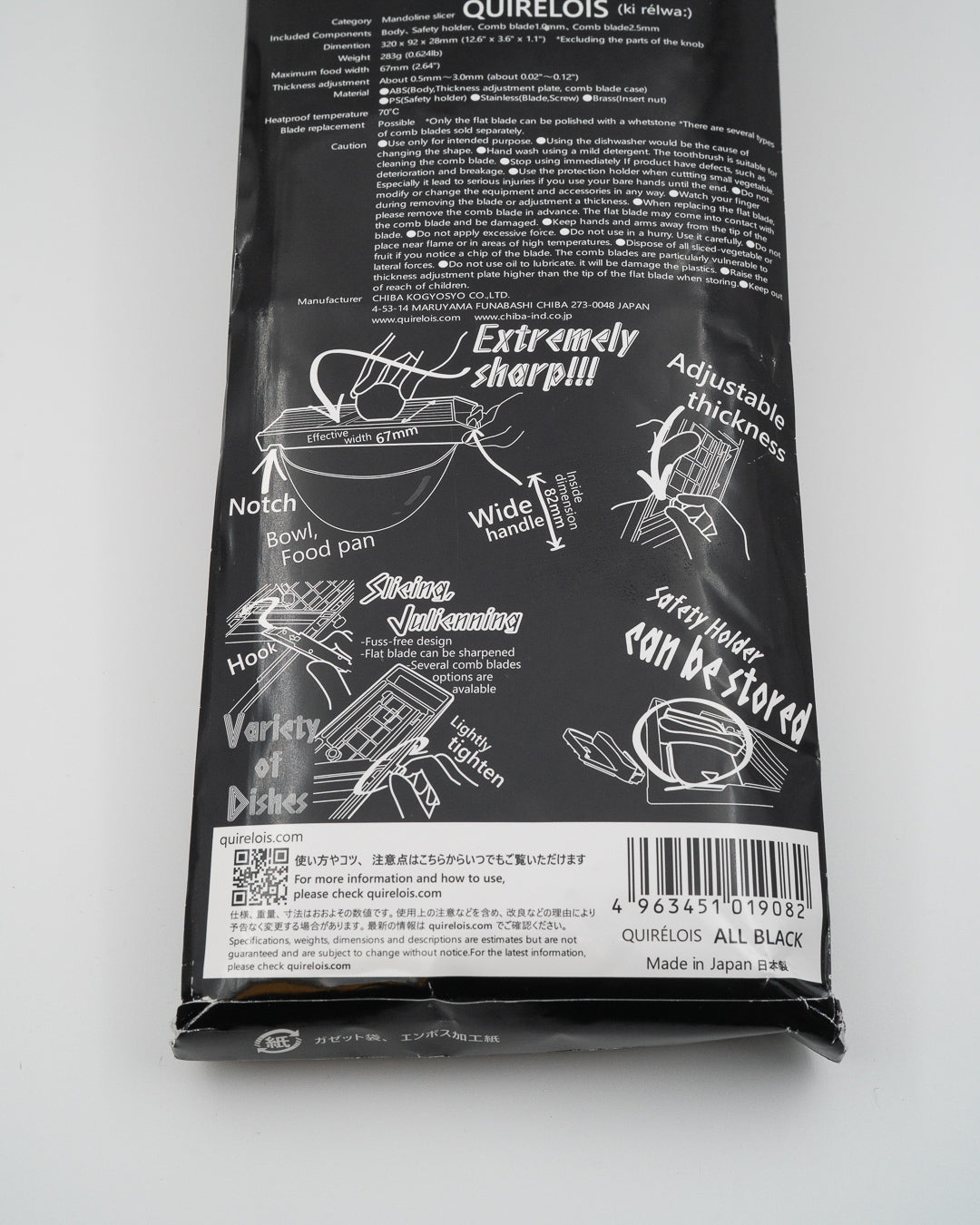 Chiba Quirélois "Kireruwaa" Mandolin 60 mm er en japansk mandolin kjent for sin eksepsjonelle skarphet og presisjon. Navnet "Kireruwaa" (キレルワァ) oversettes til "OMG, det er skarpt", og reflekterer mandolinens skarpe blad.