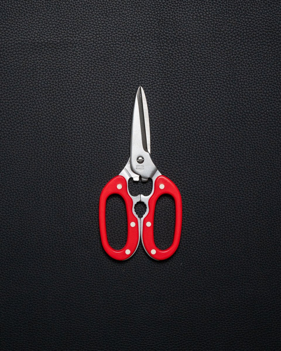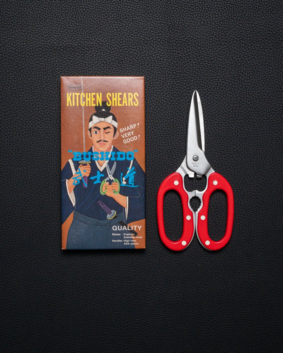 Disse vintage japanske kjøkkensaksene ble funnet på lageret til HADO, og ble trolig produsert for over 30 år siden. Sylskarp og praktisk kjøkkensaks som kan brukes til å bryte ned fisk og kylling, knekke nøtter og åpne flasker med.