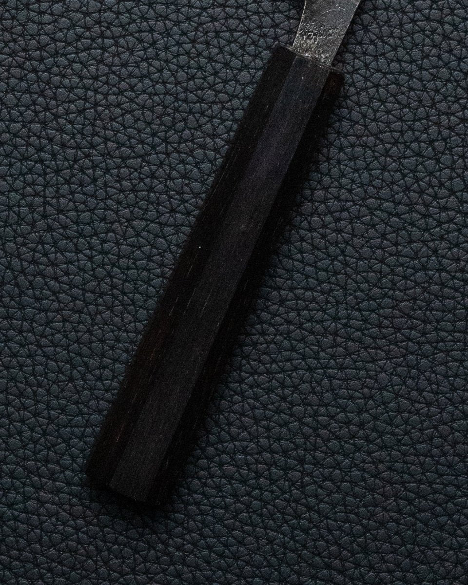 Kurogane-serien fra HATSUKOKORO er håndsmidd i Tosa-regionen i Japan, og kommer med et elegant håndtak av bøffelhorn som komplementerer råmetall-finishen på bladet (Kurouchi).