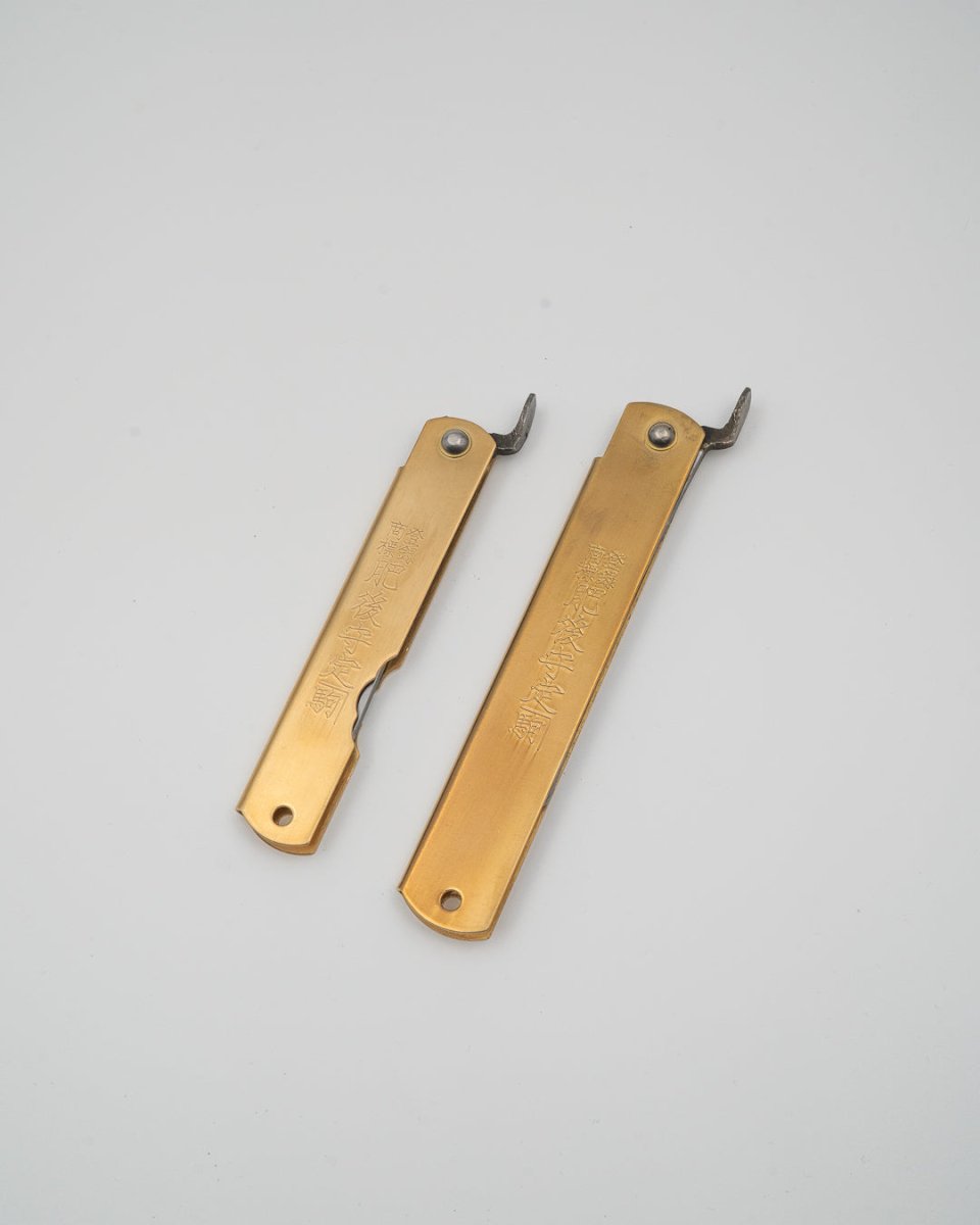 En Higonokami er en tradisjonell japansk foldekniv med et enkelt og funksjonelt design. Den har ingen låsemekanisme, men bruker friksjon og en karakteristisk spak – kalt chikiri – for å åpne og holde bladet i posisjon. Kniven bæres ofte i lomma og brukes til alt fra spikking og matlaging til åpning av pakker. Den har gjennom over hundre år vært kjent som “hverdagens kniv” i Japan – et allsidig og lettslipt verktøy med røtter i ekte håndverk.