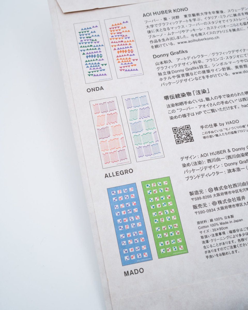 HADO Huber Aoi’s Tenugui ONDA 2 er et tradisjonelt japansk bomullsstykke som brukes til alt fra håndkle og innpakning til dekor. Tenugui har lange røtter i japansk kultur og kombinerer funksjon med estetisk mønsterkunst.