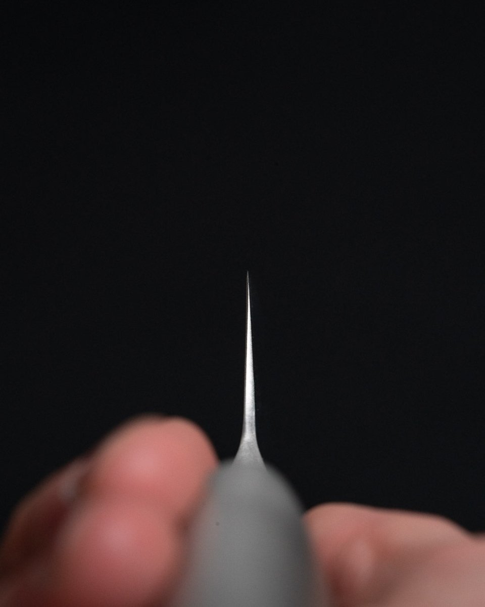 Håndtaket har en sømløs overgang til knivbladet, noe som gjør den godt balansert i hånden.