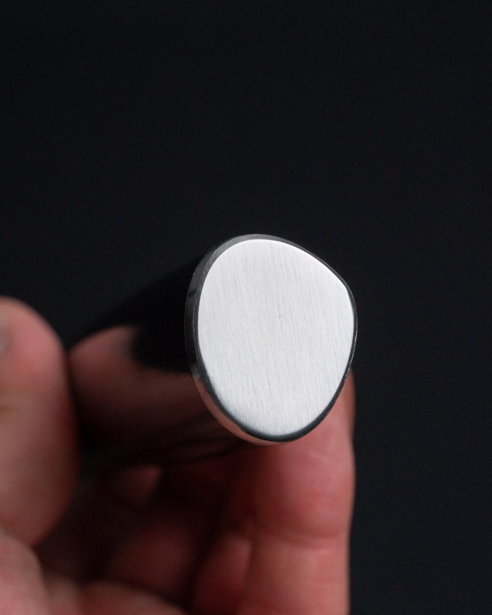Vi anbefaler å bruke en keramisk brynestav i kombinasjon med en lærstropp for å vedlikeholde / skjerpe eggen. Dette gjør at kniven holder seg skarp mye lenger før den må slipes på stein. Ved sliping anbefaler vi våtslipesteiner for å få best resultat, samtidig som at man fjerner minimalt med materiale.