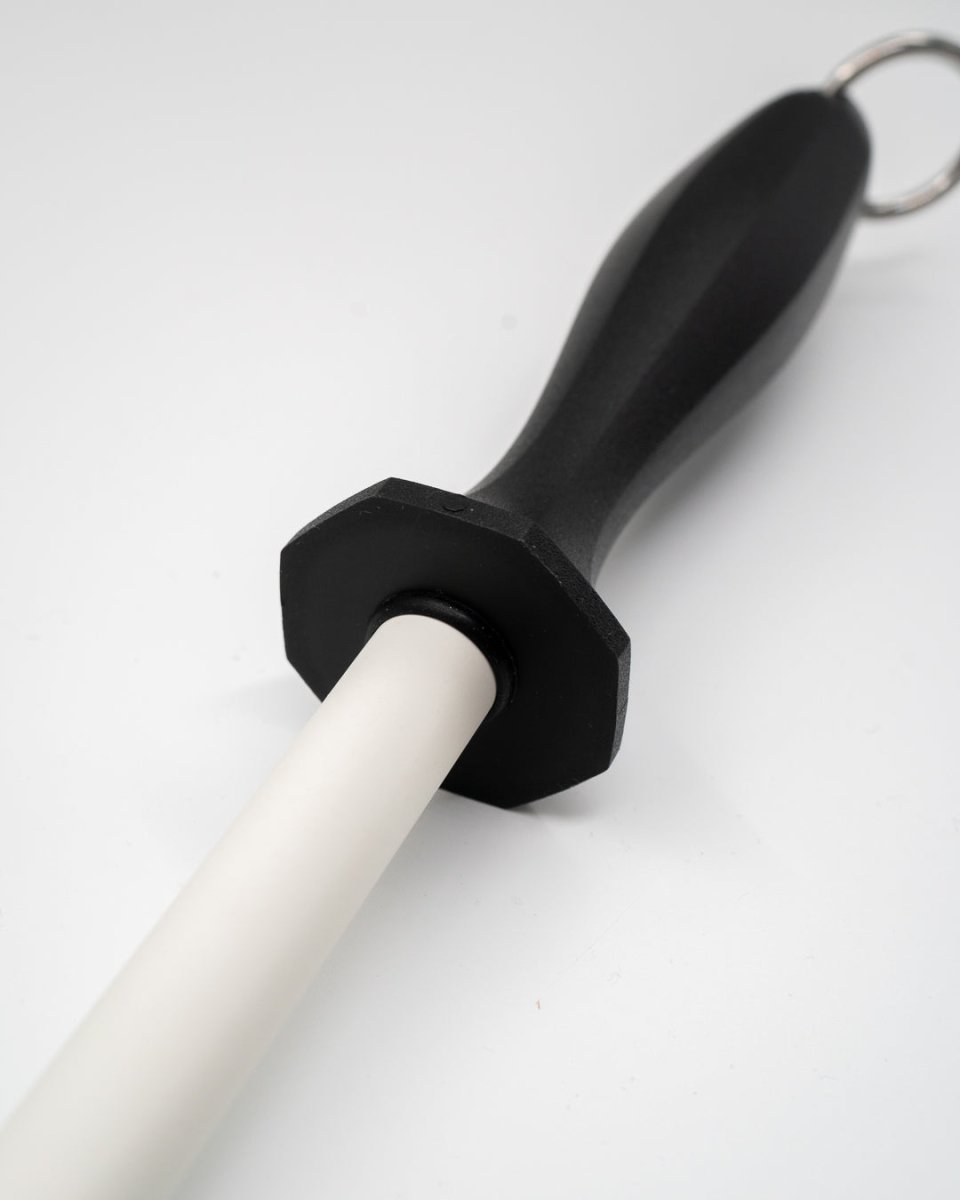 Hold knivene dine skarpe med vår keramiske skjerpestav. Den fine keramiske overflaten retter opp eggen skånsomt og bevarer knivens skarphet mellom slipinger. Perfekt for både japanske og vestlige kniver.