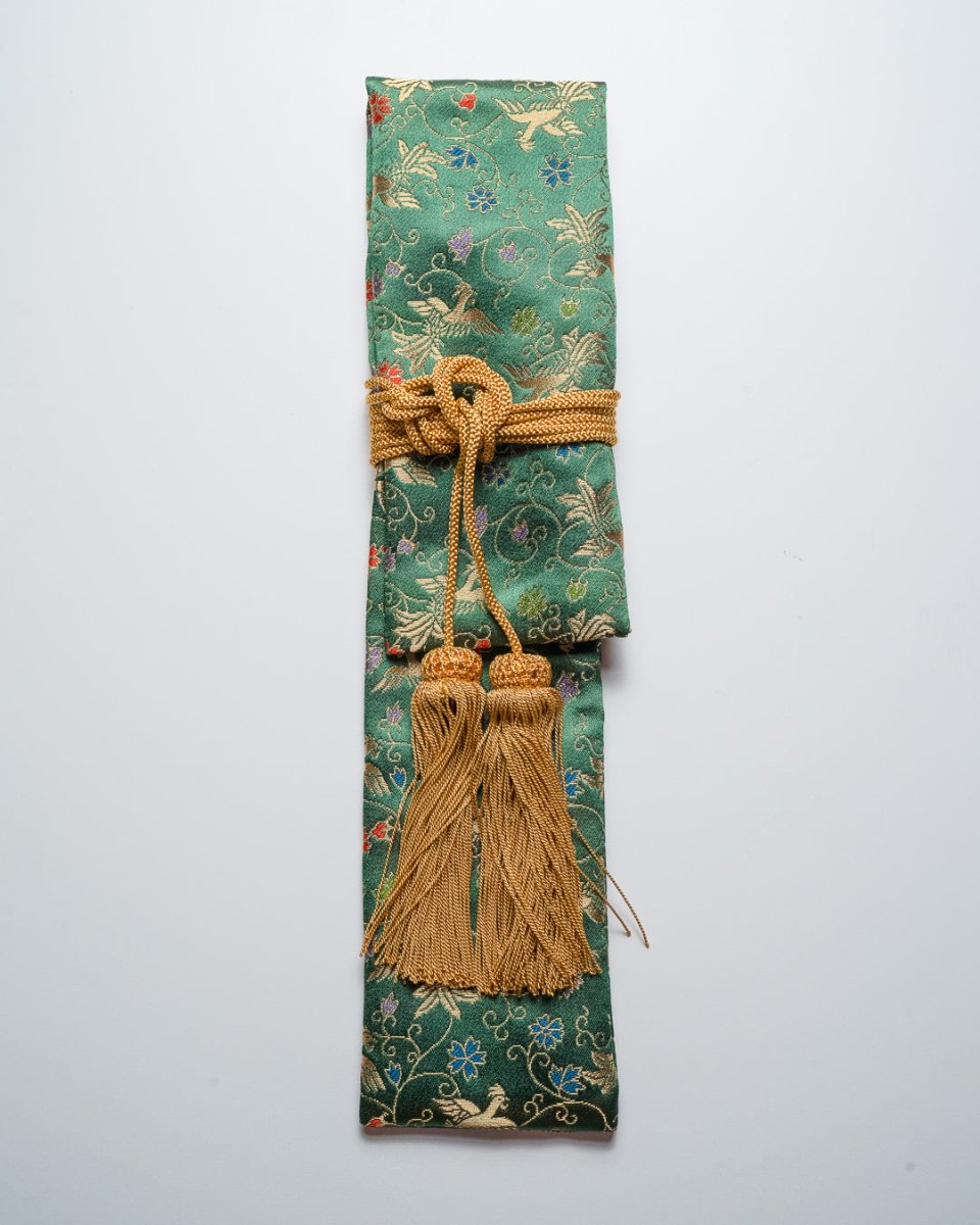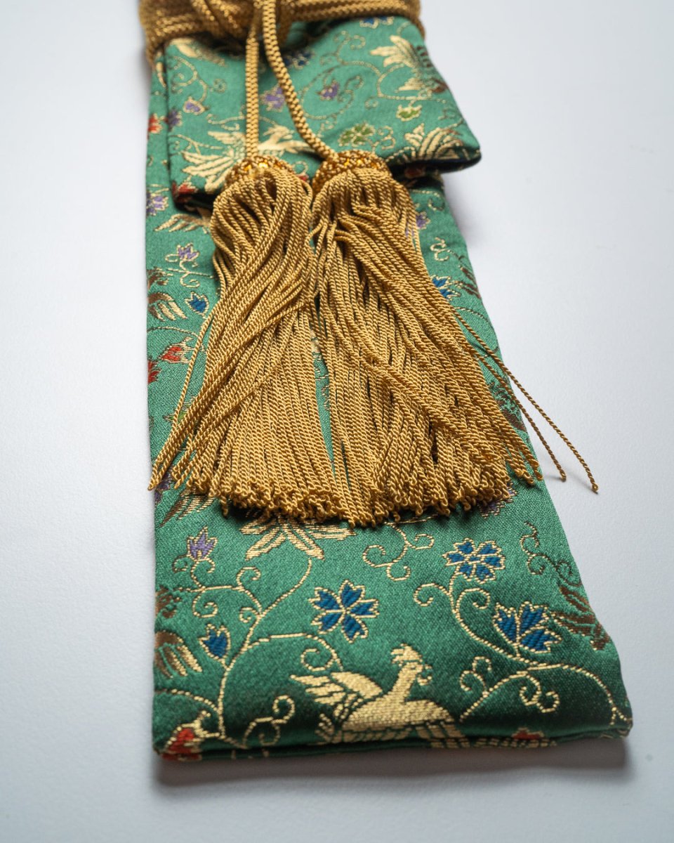Med sitt rike, gyldne design har Kinran en høy status i tekstilhåndverk og brukes i både tradisjonelle og kunstneriske sammenhenger. KINRAN Knivrull bringer denne tidløse elegansen til et praktisk og estetisk design.